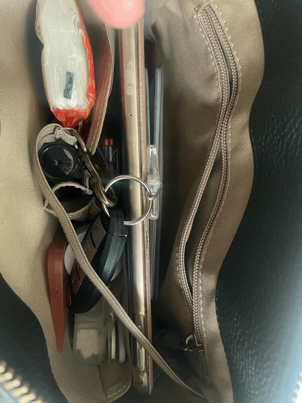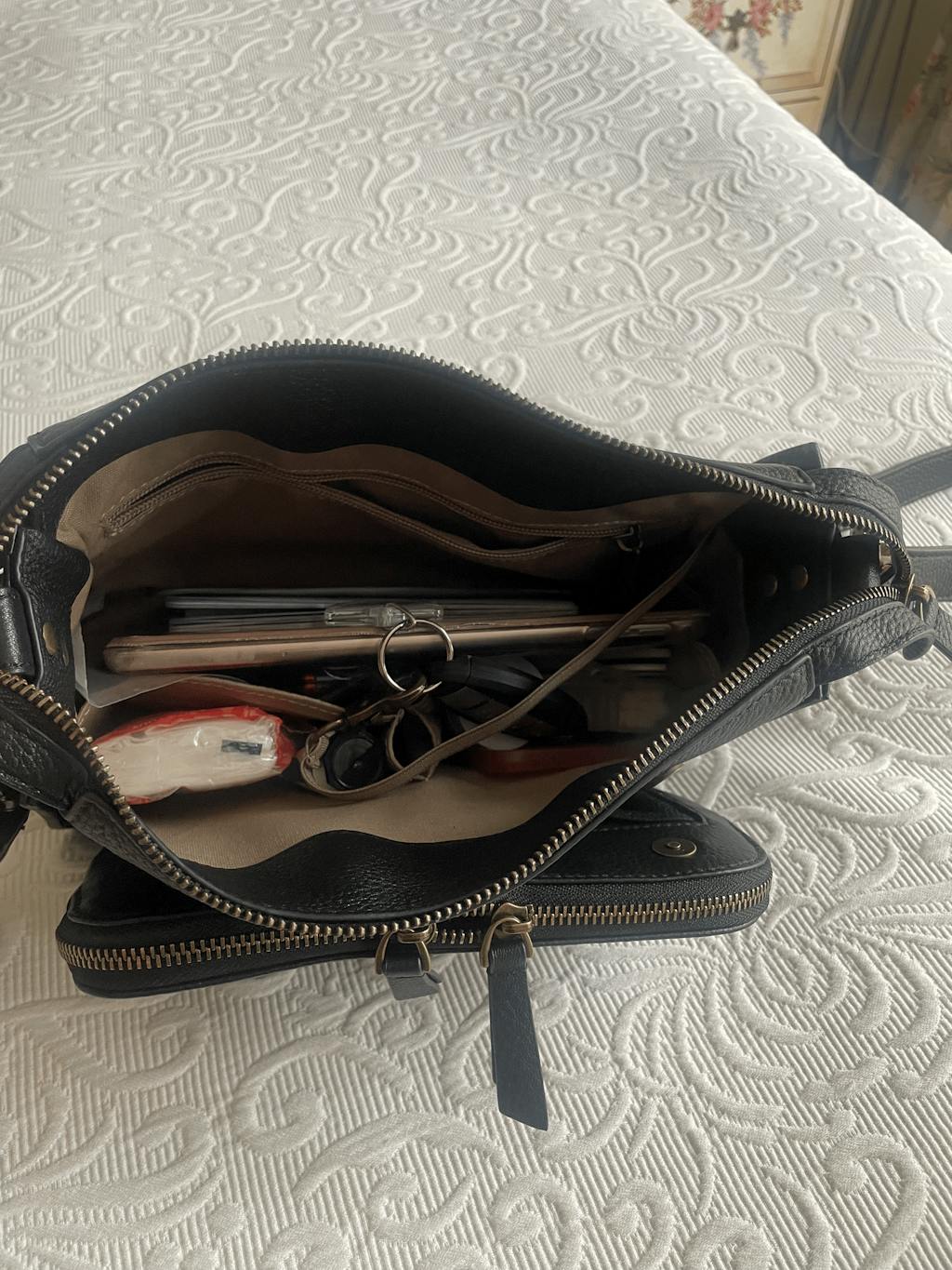 Extendable large pocket zipper with enlarged zipper opening. Convenient for storing large items. Inside zipper ensures the safety of the bag's contents.