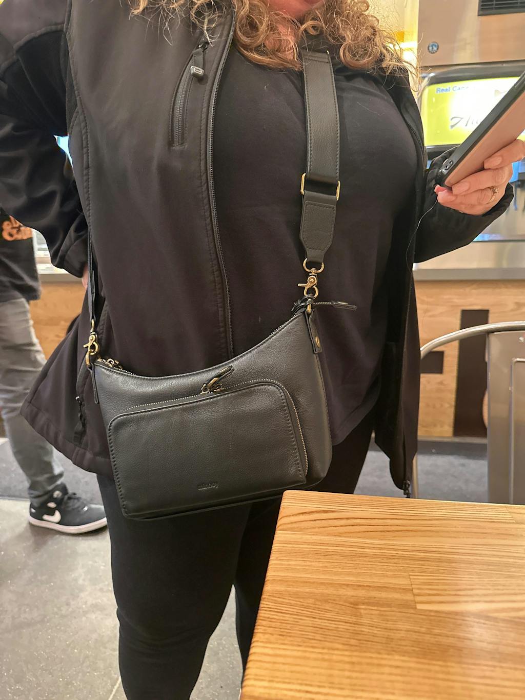 · Wide dual-material crossbody strap (leather & webbing)