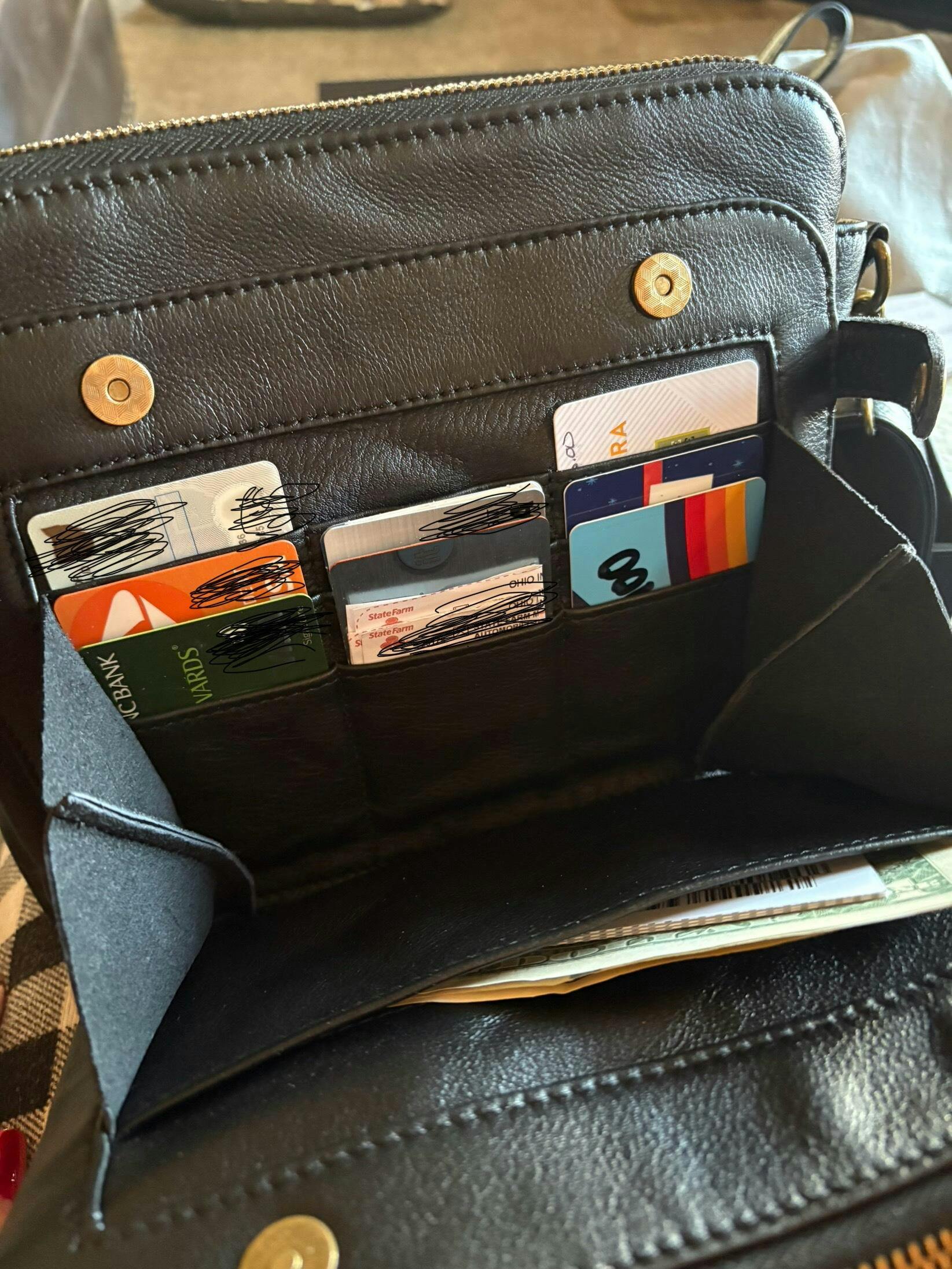 The bag has 9 card slots, two metal clasps on the outside and a sturdy metal magnetic clasp for added security, and comes with RFID functionality to better protect your personal information. This allows for added security while meeting the convenience of use.